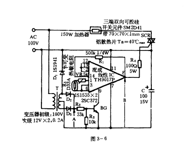 導通,加熱器有電流便升溫。當溫度及達到設定溫度值時,IC的⑧腳輸出低電平,SCR