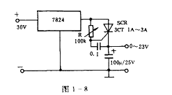 圖1—8所示的單向可控硅電路可以輸出穩(wěn)定度較高的直流電壓,且可從0~23V連續(xù)可調(diào)。調(diào)節(jié)R就能改變輸出電壓。要注意的是輸入電壓不能大于45V.以免損壞集成塊。