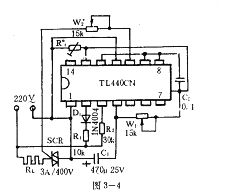 圖3—4使用集成電路TL440CN作過零檢測觸發雙向可控硅SCR,使電磁干擾減到最低限度。